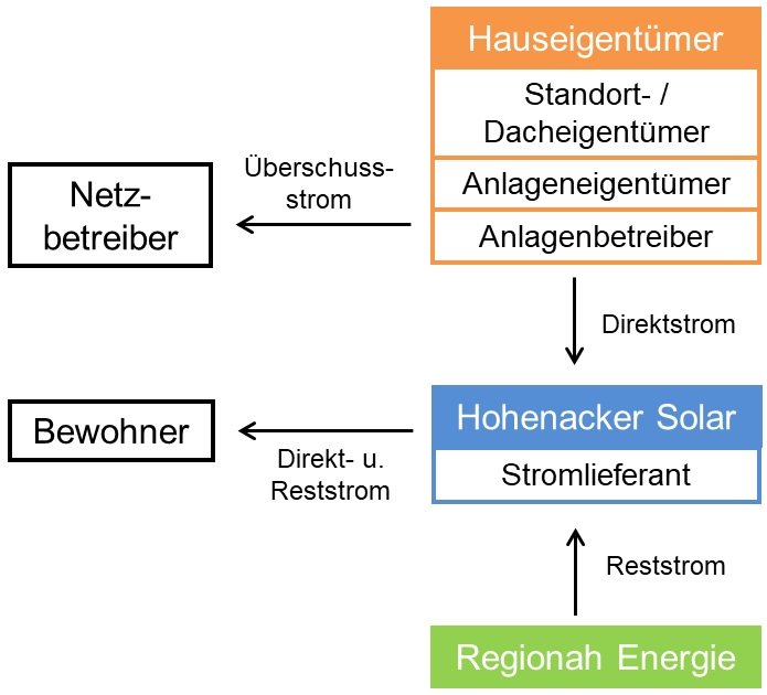 Hohenacker Solar ist Anlagenbetreiber und liefert Direkt- und Reststrom an die Mieter.